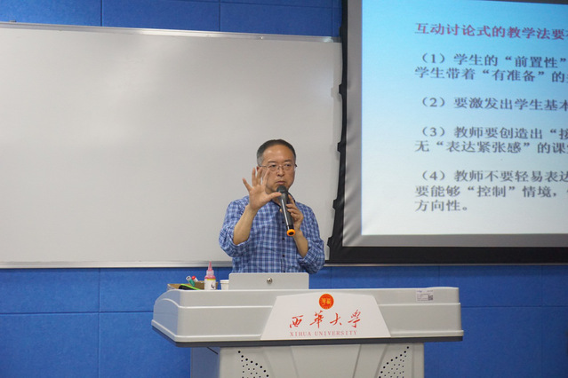 5月28日下午,四川师范大学教育与心理学院游永恒教授应邀在5B-310为我校教师作了《教学方法背后的心理分析》的专题讲座,来自不同学院的30余名中青年教师报名参与了本次活动。