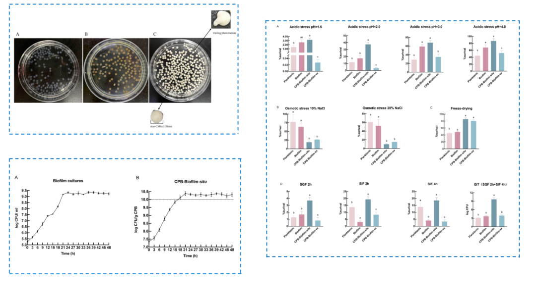 除渗透压胁迫外,CPB-Biofilm-situ耐受性优于CPB-Biofilm-ex。