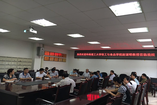 7月24日上午9点,华南理工大学食品科学与工程学院教育部“长江学者”特聘教授赵谋明在食品与生物工程学院会议室为学院师生作了“团队建设与发展对学科建设与发展的作用”、“食品发酵与代谢调控关键技术及应用”的学术讲座。讲座由食品与生物工程学院院长陈祥贵主持,学院班子成员、部分教师和学生代表参加了此次讲座。