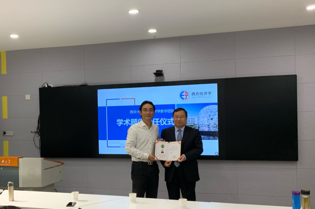 11月5日上午,在我校西方经济学教研团队开展“回归育人本分,提升教学能力”期中教研活动期间,应团队首席教授李政军的邀请,北京大学经济学院博士生导师苏剑教授来校作了题为《基于总供求模型和中国特色的宏观调控体系》的学术报告。讲座开始前,副校长费凌为苏剑教授颁发了“西方经济学教学团队学术顾问”聘书。