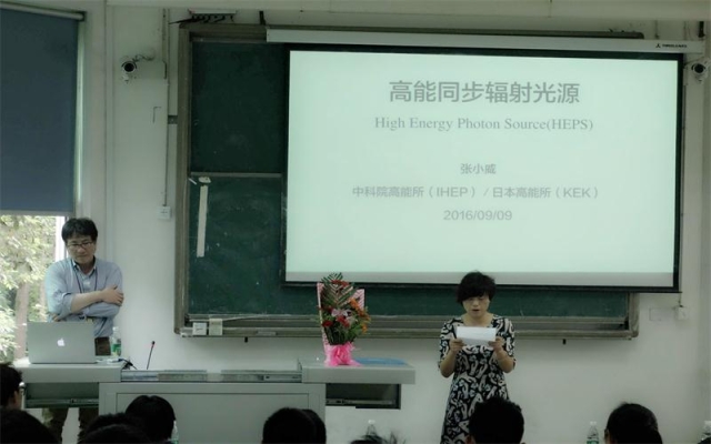9月9日下午,理学院在4A-205教室举办2016年物理学高端学术讲座,中科院高能物理研究所张小威教授应邀为学院师生作了题为“高能同步辐射光源”的学术报告。学院物理系主任迭东教授、辅导员杨玉强,部分物理学专业研究生、2015级应用物理学专业本科生聆听了讲座。讲座由副院长王周玉教授主持。