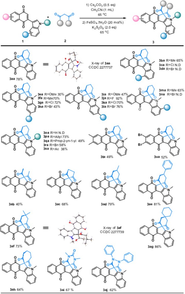 图2. 醌并环戊[2,1-b]吲哚底物拓展