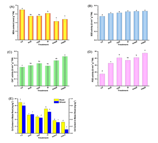 为了提高农作物产量,农药化肥被大量施用,从而导致土壤板结、重金属污染等一系列生态环境问题。其中,镉污染严重影响农作物的生长发育和农产品的品质安全,从而威胁到人体健康。玉米是我国三大粮食作物之一,也是重金属镉的富集作物。因此,探究镉污染土壤玉米种植过程中,减少农药化肥的施用,降低镉的生物利用度,促进玉米的生长发育成了亟待解决的问题。