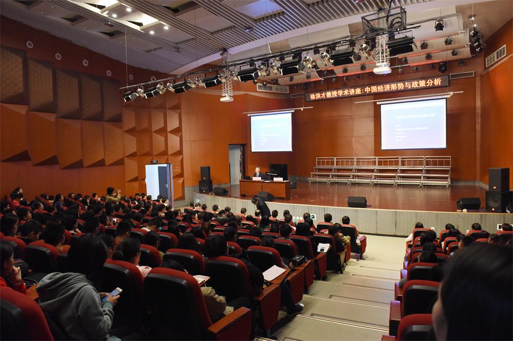11月4日下午,中国国际经济交流中心副总经济师、研究员徐洪才教授应邀为我校师生作了中国经济形势与政策分析的报告。经济学院党委书记李雪玫、副院长兰虹及学校师生200余人参加了报告会。报告会由兰虹教授主持。