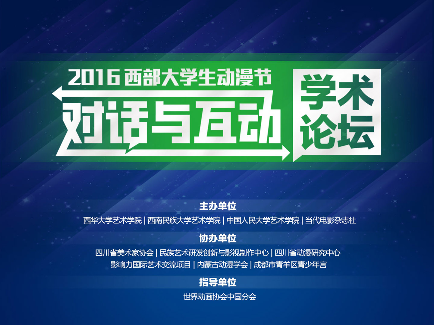 11月13日,“对话与互动”——2016西部大学生动漫节学术论坛在我校艺术大楼音乐厅举行。本次学术论坛作为“第11届‘五十六个月亮’西部大学生动漫节”的重要组成部分,由西华大学艺术学院、西南民族大学艺术学院、中国人民大学艺术学院、当代电影杂志社等单位联合举办。西华大学艺术学院主持工作副院长屈立丰,西南民族大学艺术学院动画系主任周舟,当代电影杂志社编辑部主任张煜,中国人民大学艺术学院郭春宁女士,英国皇家艺术学院动画系Birgitta Hosea教授,美国马里兰大学巴尔的摩分校视觉艺术动画交互媒体系Corrie Francis Parks,北京电影学院陈莲华先生,瑞士动画艺术家Delia Hess女士,北京漫联创意科技有限公司副总裁黄金女士,澳门漫画从业员协会黄天俊先生,欧洲STOPTRIK定格动画节策展人、波兰雅盖隆大学动画教师、波兰动画节策展人Michal Bobrowski先生,波兰动画节策展人Olga Bobrowska女士,北京御风者漫画社王昱文女士,中国漫画研究会、东方潮漫画学校徐涛先生、中国传媒大学张骏教授以及来自各兄弟院校动漫专业的教师同行及媒体嘉宾出现了本次论坛。