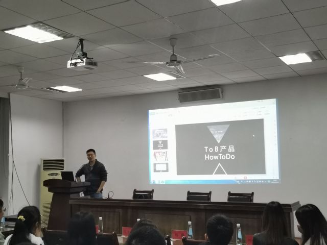 张天夫以“To B产品 How To Do”为主题作了分享。他深入浅出地为同学们介绍了当今行业的发展趋势以及自身的一些心得体会。他强调产品要围绕刚需、痛点两方面进行设计,达到极致价格、极致性能以及极致的用户体验,从开发端去创造需求,引导市场,激发市场潜力,从技术端去发现市场价值。