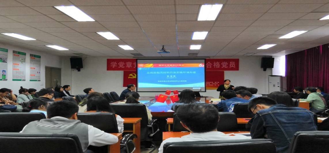 陈俊英教授以“血液接触类材料表面微环境构建”为题,从血液接触类材料面临的问题为切入点,对生物材料的研究现状、应用前景进行了简要介绍,并结合“血液接触类材料表面微环境构建”的研究课题,重点介绍了血液接触类材料几种表面改性方法。她特别强调,从Ti-O表面的覆膜改性,到生物化修饰,再到构建表面生物功能信息化微环境,应当是层层深入,缺一不可的,只有实现多种功能的协同作用,才能得出问题的最优解。