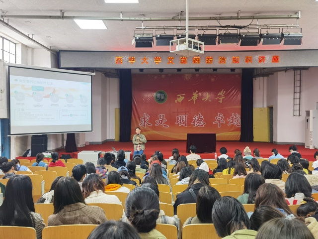 主讲老师以“加强学习、科学防疫”为主题,从传染病的定义、传染病的分类、传染病传染必须经过的环节、传染病的防控措施、新冠肺炎防控知识五个方面深入浅出地为大家作了讲解。随后,他们就新冠疫情防控提出三点建议:一是戴口罩、勤洗手,不饮食三无食品和变质食物;二是尽量不要乘坐公共交通工具,注意往返途中安全;三是严格遵守疫情防控的相关法律法规,不瞒报、不漏报。肖伟以图文结合的讲解方式,让同学们了解了我国艾滋病病情流行概况和发展趋势,并让同学们意识到了开展防治艾滋病活动的必要性。最后,两位老师强调,艾滋病虽然是一种危害极大的传染病,但还是“可防、可控、可治”的,他们倡导大学生要自觉遵循健康文明的生活方式和行为准则,对待艾滋病患者要有同情和关爱。