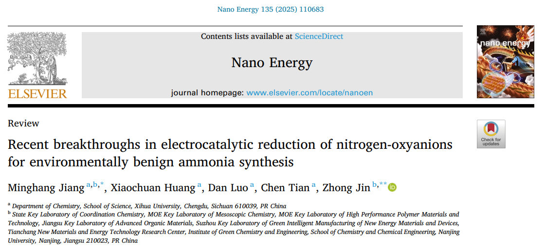 近日,理学院江明航副教授在Nano Energy期刊(中科院一区,IF=16.8)发表题为“Recent breakthroughs in electrocatalytic reduction of nitrogen-oxyanions for environmentally benign ammonia synthesis”的综述论文。江明航副教授为该论文的第一和通讯作者,西华大学为第一通讯单位。南京大学金钟教授为该论文的共同通讯作者。