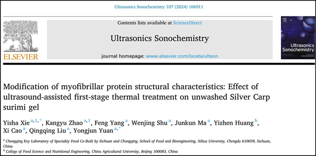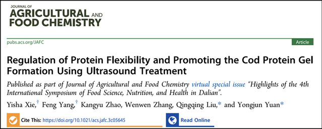 近期,食品与生物工程学院袁永俊教授、刘庆庆副教授、谢伊莎副教授研究团队在Journal of Agricultural and Food Chemistry、Ultrasonics Sonochemistry、Food Research International等国际TOP期刊针对超声调控蛋白凝胶与机制研究等发表多篇高水平研究型论文。