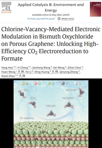 近日,材料科学与工程学院赵小丽博士在SCI一区TOP期刊《Applied Catalysis B: Environment and Energy》(IF=20.3)发表题为“Chlorine-Vacancy-Mediated Electronic Modulation in Bismuth Oxychloride on Porous Graphene: Unlocking High-Efficiency CO2 Electroreduction to Formate”的研究论文。《Applied Catalysis B: Environment and Energy》是催化、能源环境和材料化工领域公认的顶级期刊,即时影响因子为27。西华大学为第一完成单位,西华大学赵小丽博士为第一通讯作者,广州大学王欢教授和电子科技大学黄明教授为共同通讯作者,西华大学材料学院2023级硕士研究生郝勇为论文第一作者。