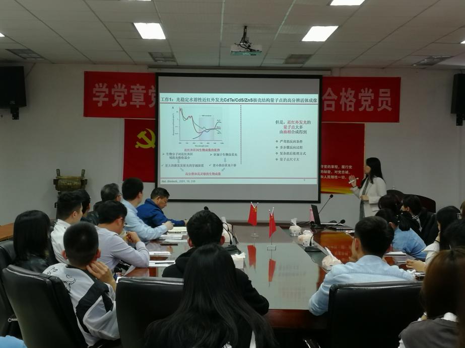 汪婕以“纳米材料的湿法合成及其在生物成像和电催化等方面的应用”为题,介绍了已经开展的研究工作:研究了贵金属催化剂,不稳定状态和稳定状态(不同晶型)对催化性能的影响和厚度控制Au@lr核壳结构纳米片的晶格变化及晶格结构对其水合肼点氧化性能的影响。详细讲解了纳米材料因其独特的物理化学性质在电光声热磁等领域有着广泛的应用。其中,量子点和贵金属纳米材料分别以其优异的光学和电学性能收获了尤为众多的关注。介绍了二六族量子点和碳量子点的水相合成及其在生物成像上的应用,并重点讨论了不同晶相对贵金属纳米材料电催化性能的影响。