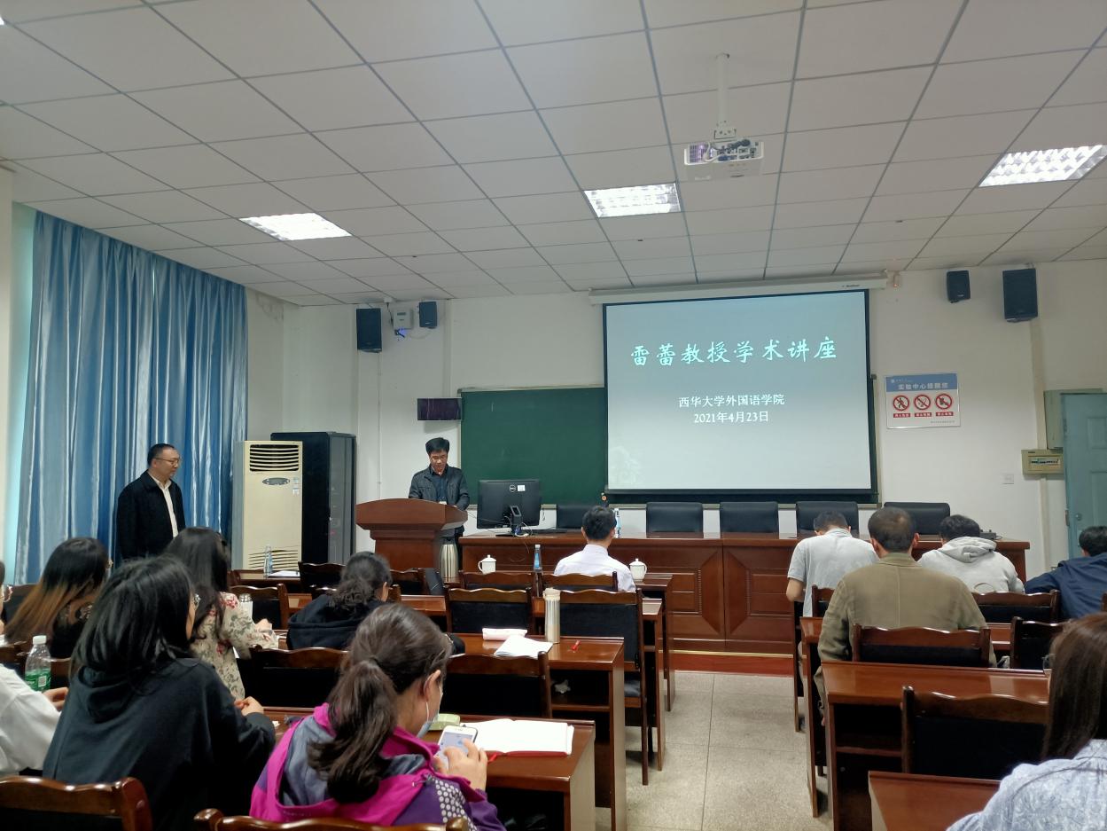 4月23日下午,上海交通大学外国语学院雷蕾博士在我校四教MTI教室4B-111开展了题为“大数据时代的应用语言学研究与国际期刊论文发表”的学术讲座。讲座由外国语学院副院长李国宏主持,参加此次讲座的主要有外国语学院教师、2019级外国语学院硕士研究生以及英语专业本科生。