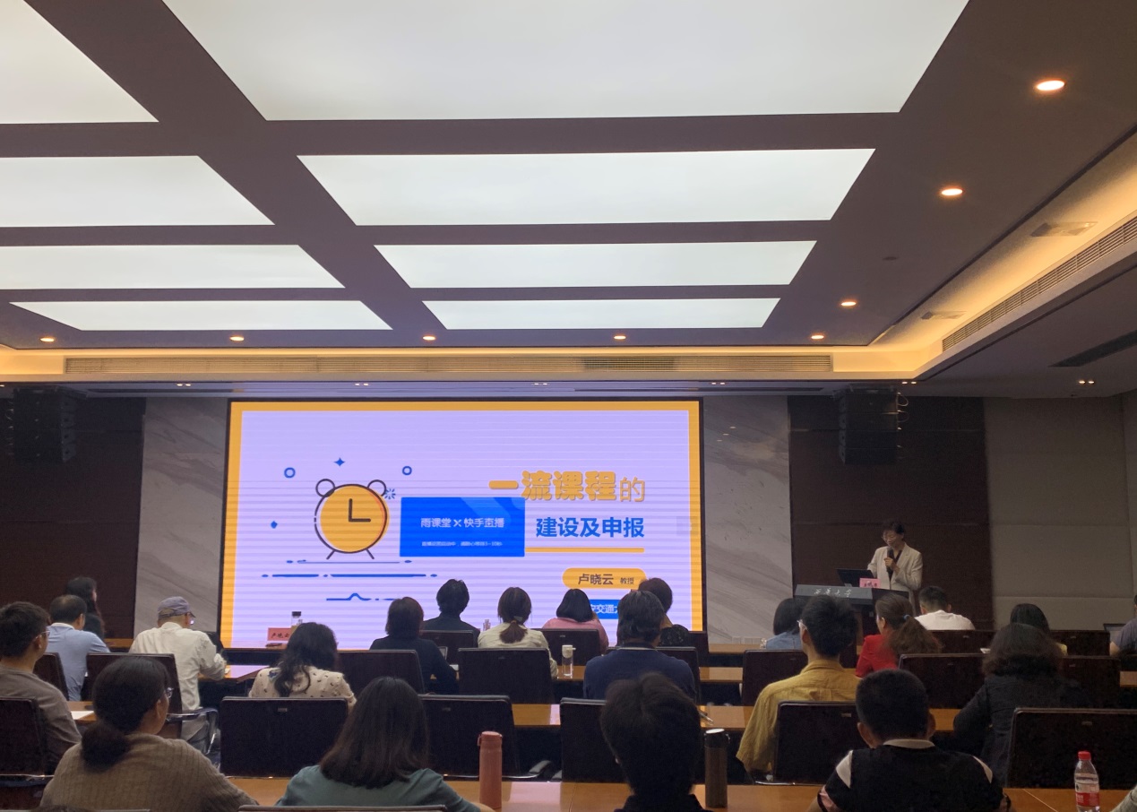 卢晓云教授结合自身多年的教学经验,从2W2H入手,深入浅出地讲解了一流课程的教学设计理念(Why)、一流课程的教学目标设定(What)、一流课程的教学内容及教学活动组织(How)、课程教学效果的提升和评价(How good)这四个方面的内容。卢晓云教授通过分享自己构架的“知识-能力-思维-价值”四维度一体化的高质量课堂,系统剖析了如何实现以学生为中心的教与学。最后,她指出,只要有心、用心、不忘初心、充满爱心,相信所有老师都能打造出优秀的一流课程。