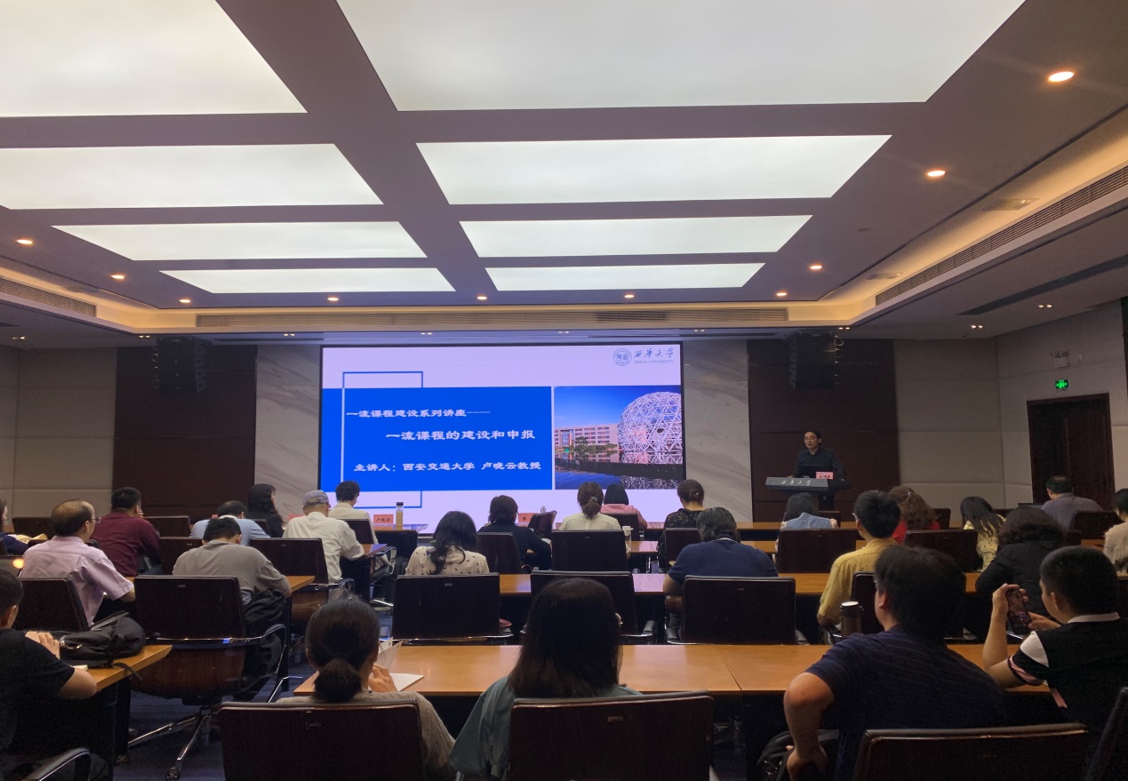 5月21日上午,学校在行政楼101会议室举行了主题为“一流课程的设计、建设及申报”的讲座,此为一流课程建设系列讲座之一。讲座邀请西安交通大学卢晓云教授担任主讲人。副校长费凌,教务处处长蒋珍菊,学校拟推荐申报2021年国家级、省级一流课程的相关课程负责人及团队成员、各教学单位相关老师及教务处相关工作人员参加了此次讲座。讲座由费凌主持。