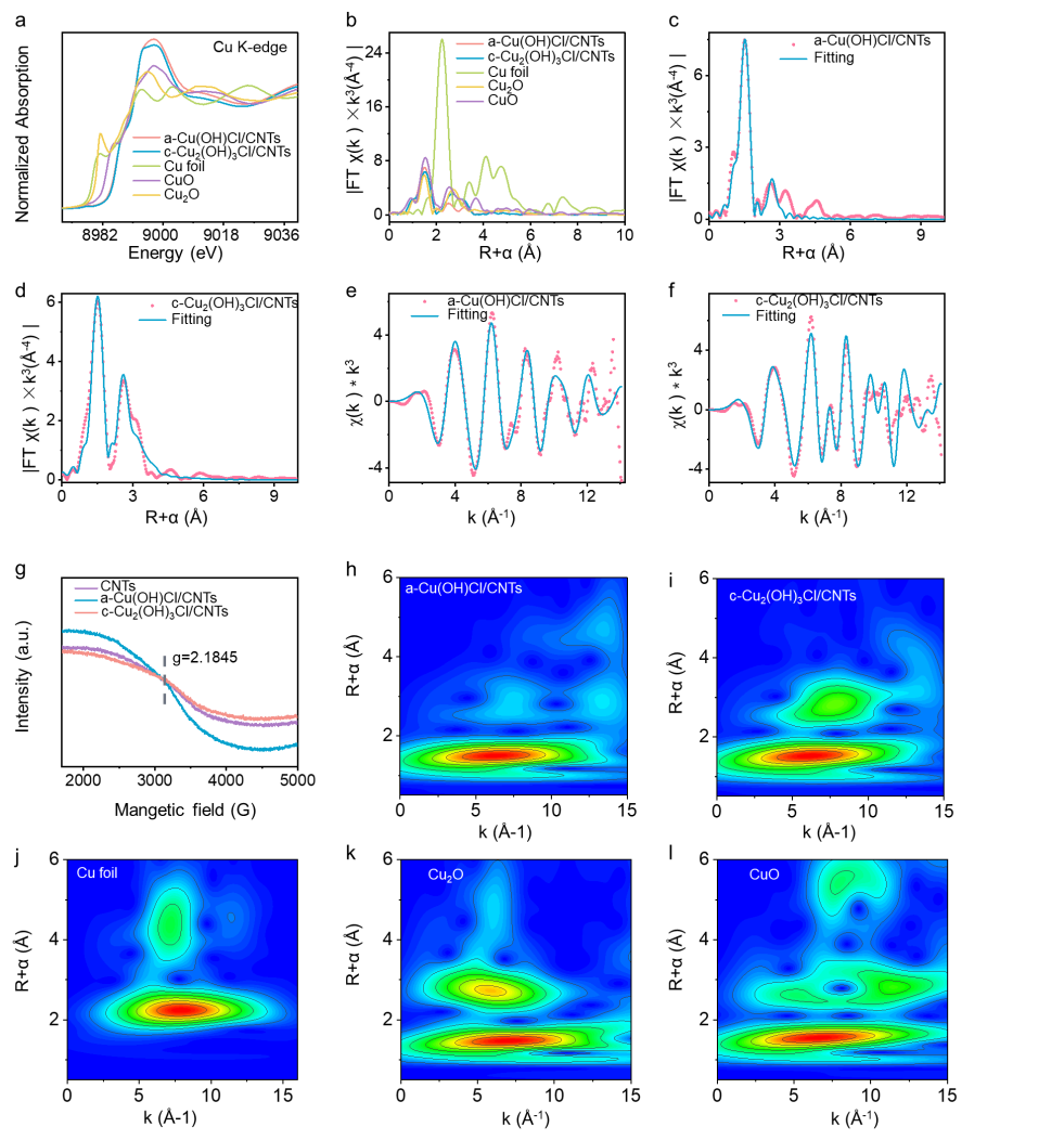 a-Cu(OH)Cl/CNTs和c-Cu2(OH)3Cl/CNTs样品的同步辐射数据分析