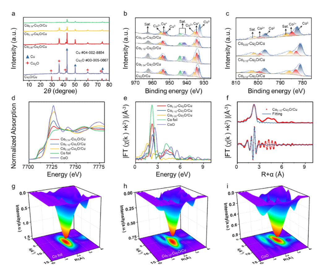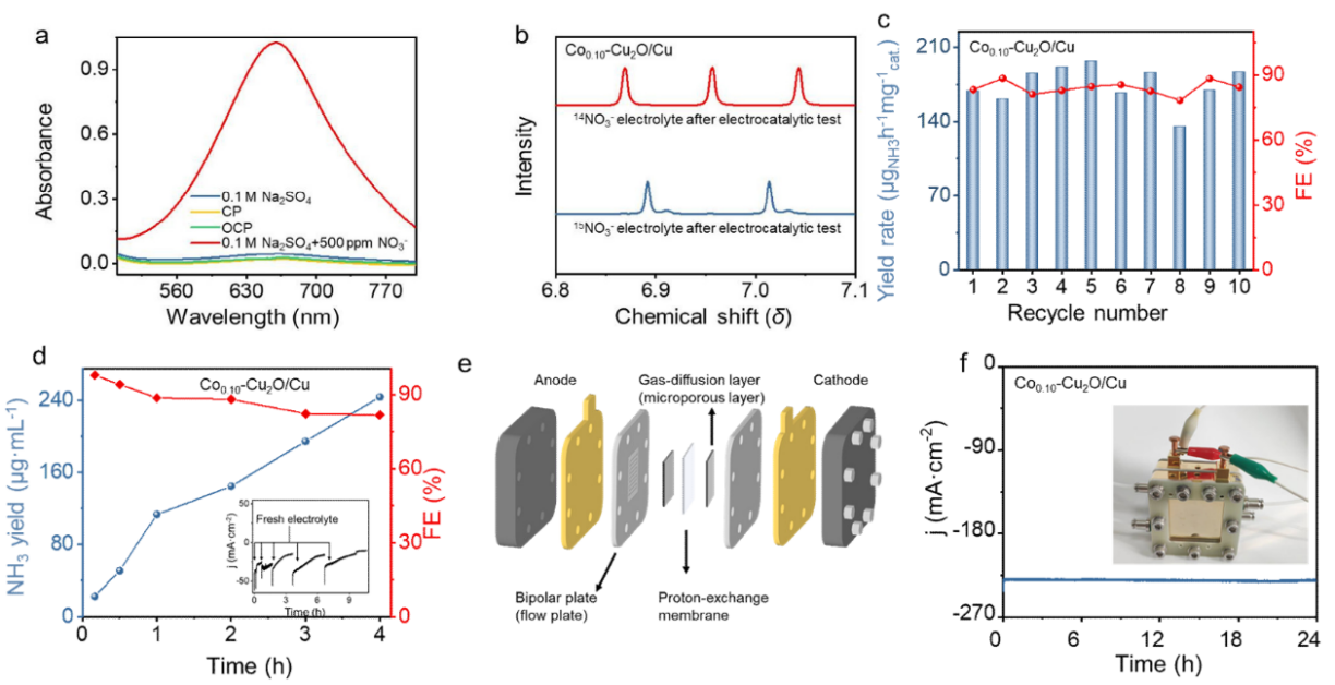 综上所述,本工作通过一种简单快速的化学置换法在Cu2O/Cu异质结界面处掺杂不同浓度的Co,有效调节了催化剂表面的*H浓度,进而提升了电催化硝酸盐还原产NH₃的选择性,为后续设计和合成高效Cu基催化剂以及优化催化剂表面*H产生的动力学路径以提升NITRR性能,提供了一定的实验和理论参考。