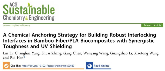 近日,材料科学与工程学院高耐受聚合物基复合材料创新中心研究生李临以第一作者在国际Top期刊ACS Sustainable Chemistry & Engineering(中科院1区)发表题为《A Chemical Anchoring Strategy for Building Robust Interlocking Interfaces in Bamboo Fiber/PLA Biocomposites with Synergistic Toughness and UV ShieldingClick to copy article links》的研究论文。论文通讯作者为韩锐教授,西华大学为第一完成单位。