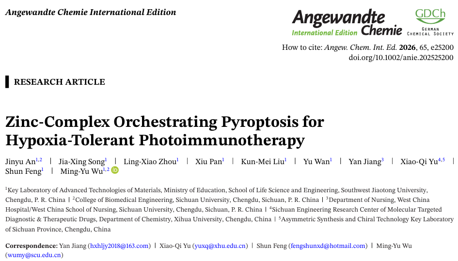 近日,西华大学余孝其教授团队联合四川大学吴明雨副教授、西南交通大学封顺教授团队合作在化学领域TOP期刊《Angew. Chem. Int. Ed.》(IF =17)连续发表两篇关于光动力抗菌及抗肿瘤治疗的研究论文。