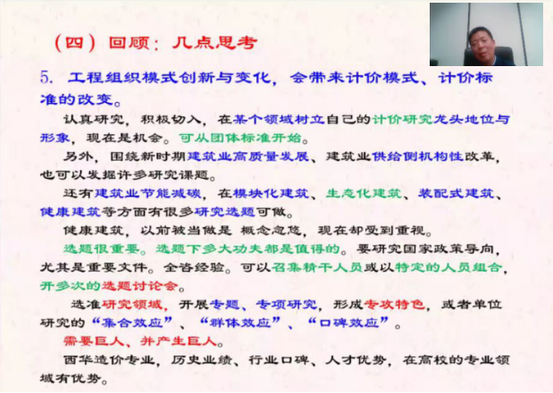 本次会议展现了易冰源教授作为一名学者的深厚学术素养与严谨的治学态度,使参会师生对我国建筑业经济发展有了更清晰的认识,同时也极大地激发了师生们的科研写作热情。