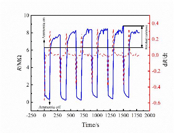 Figure Resistance changes of TPU/MWCNTs-g-PPy nanocomposites during 6 cycles of adsorption-desorption in ammonia atmosphere.