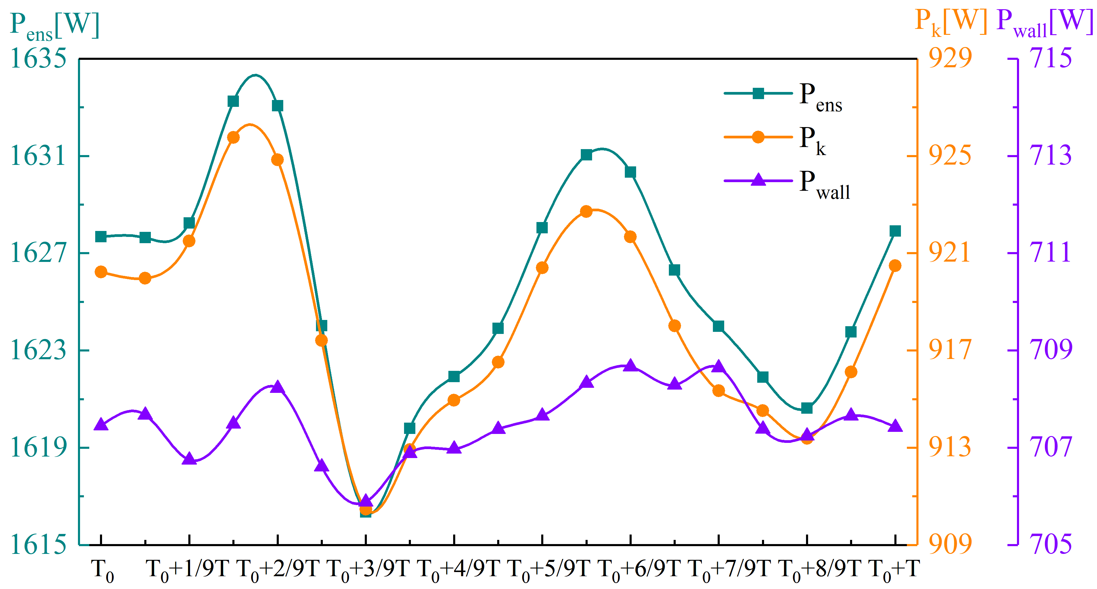 FIG.6. Variation curves for the enstrophy dissipation powers in the water condition.