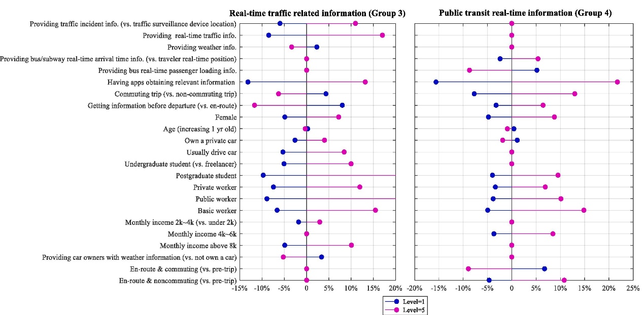 Fig.5. Partial effects for public transit usage information and driving related information (Groups 1 and 2).