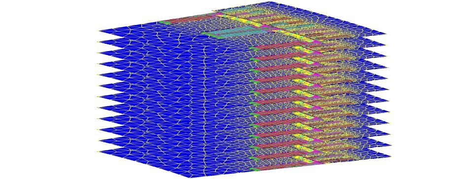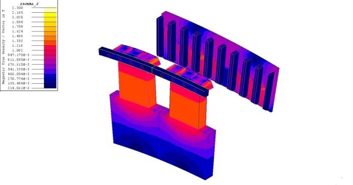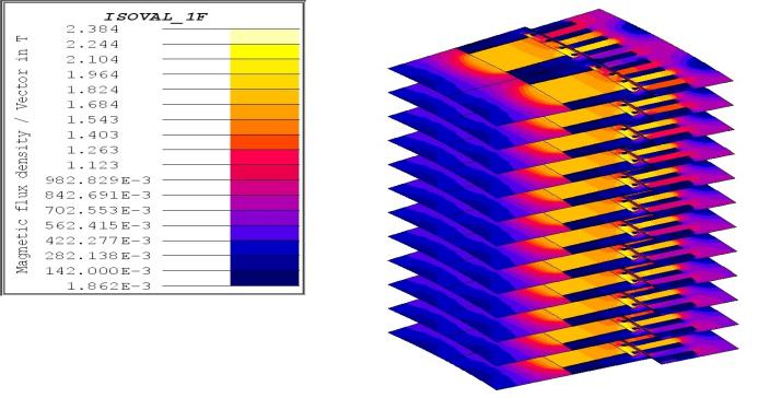 (b)电磁场求解区域细分建模之后并行求解(端部3D,直线部分准3D多层模型,并行求解)
