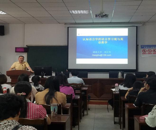 5月14上午10点,湖南大学外国语学院教授、博士生导师刘正光教授应邀来到外国语学院,为学院师生作了题为“认知语言学的语言学习观与外语教学新理念”的讲座,学院全体研究生以及部分教师听取了报告。