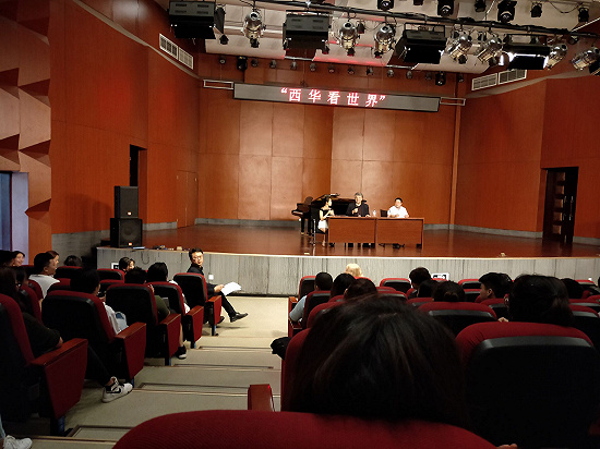 5月17日上午10:00,由音乐与舞蹈学院举办的“西华看世界——中国歌唱演员在使用欧洲语言演唱中的问题与解决办法(以意大利语及德语为例),”在艺术大楼音乐厅开讲,本次讲座邀请到加拿大多伦多大学音乐学院声乐与歌剧系主任达瑞尔·爱德华兹教授进行主讲。院党委副书记兼副院长李爱军主持讲座。约200名师生前来聆听讲座。