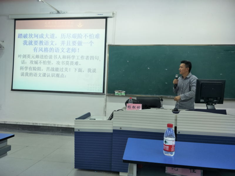 在本次讲座中,杨松林老师以“先说为什么教语文不像教数学英语那样可以有立竿见影的效果?”这一问题作为切入点谈了自己对待语文教学的态度。他认为,作为一名语文教育者要具备良好的教学能力、科研能力、素质以及平易、从容、谦和的心态。虽然有人认为当一名语文教师,注定“清贫”,但是“踏破坎坷成大道,历经艰险不怕难”,从事这一行业的工作,就要更加认真负责。