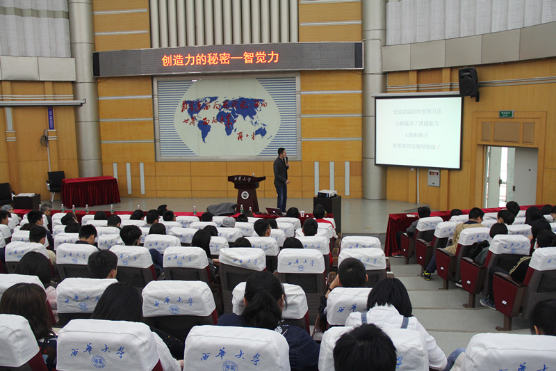 | 4月1日下午14:30,西华讲堂迎来了一位特殊的讲座人,他是知名品牌设计师,也是创研综合设计所的创始人之一,曾合著《设计信仰—职业的力量》一书,发起筹建了DCB北京.设计交流中心。他叫张子建,“创造力的秘密——智觉力”的主讲人。 创新能力来自思维、来自神经元的碰撞、来自直觉,更来自“智觉力”。张子建在讲座中如是说。他这样描述智觉力:智觉力=设计思维+直觉力+创新力。智觉力的概念,是张子建在2014年首次提出的,是一种感性与理性混合的探索式创新能力。 在讲座中,张子建着重谈到了如何提高共同能力的方法、如何提高效率,抓住转瞬即逝的灵光以及该如何提升创造力等三个方面的内容。张子建讲到,要提高沟通能力,最重要的是学会交谈。交谈是最好的学习方式,能够大幅提高沟通能力、人脉和圈子,但是最重要的还是能够开阔眼界,让人高屋建瓴的看待问题。 在解答了如何提高沟通力的问题之后,张子建提到了第二个秘密——研究。他说道,研究就是使人变得专业,从业余变得专业,是解决所有问题的方法。“同理心”是张子建提到的第三个关键词,同理心能够提升人的灵觉,让人的思维更加充满灵性。在讲解过程中,张子建老师还辅以游戏的方式,通过一个简单的呼吸训练,闭眼数吸21次,让在场的师生直抵思维深处。张子建提到,现今社会中,设计师变得越来越重要,设计思维也日益成为人们所关注的东西,设计思维在各行各业都有所体现。为此,张子建特地通过图文、数据的方式,直观的讲解了设计思维在经济社会中的重要地位。 讲座中,张子建时而幽默、时而深邃,将在场师生们带入了一个崭新的思维领域。