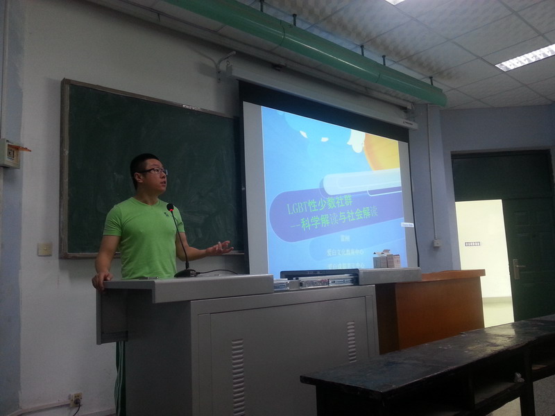 10月9日14:00,由心理健康服务与研究中心开设的社会心理学公选课堂邀请到“爱白成都青年同志活动中心”负责人雷刚及工作人员许亚伟为大家作了以“LGBT性少数社群——科学解读与社会解读”为主题的讲座,讲座在3B-303教室举行。 雷刚先以一位外国同性恋男生的自述视频引出“同性恋”这一主题,继而对同性恋心理进行了详细分析,通过提出“同性恋是否讨厌异性”、“同性恋者是否有不正常的性倾向”等问题引发大家思考和讨论,最后他表明:“同性恋并非心理疾病”。最后,雷刚为大家分享了世界各地关于同性恋现状的资料,倡导大家正确对待同性恋现象并且消除歧视。 随后,许亚伟从“性认同”、“性行为”、“性倾向”为三条主线进一步讲解。他结合自身成长经历及身边例子说明了自我认同的重要性,同时向大家普及了艾滋病的科学知识,及如何正确对待同性恋艾滋病患者。 在座同学在互动过程中积极思考,整堂讲座气氛活跃。“同性恋现象”是当代社会的热点议题,这次讲座在引导学生直面好奇和隐秘的问题同时,又让大家对同性恋有了更理性的思考。