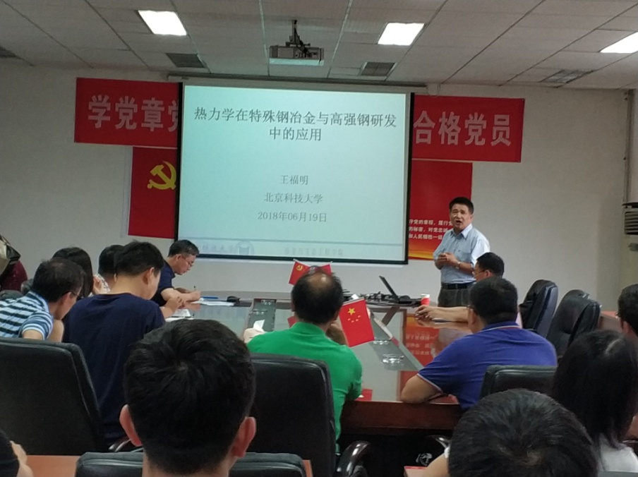 6月19日下午14:30,应材料科学与工程学院的邀请,北京科技大学原冶金与生态学院副院长,博士生导师王福明教授在5A-427会议室作了一场名为“热力学在特殊钢冶金与高强钢研发中的应用”的学术报告。报告会由学院院长栾道成教授主持,学院部分师生参加了报告会。