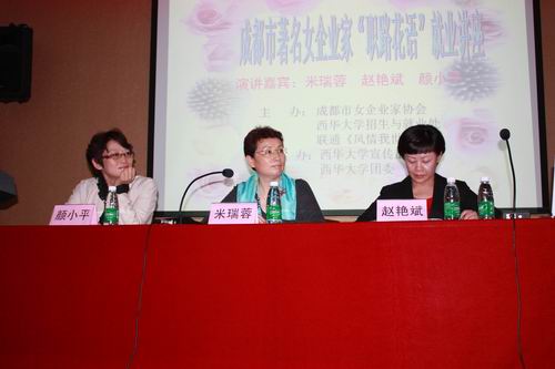 10月27日,西华大学临江苑学术报告厅人头攒动,“职路花语”走进校园大型公益活动的第一站即“走进校园”专题讲座在此举行。成都女企业家协会会长、成都万博置业董事长兼总经理米瑞荣,成都女企业家协会常务副会长、毓秀苑宾馆总经理赵艳斌,成都建川实业集团有限公司总经理颜小平到场并作了精彩演讲。此次活动由招生与就业处承办。招生与就业处主要负责人及其400余名师生听取了专题讲座。 |