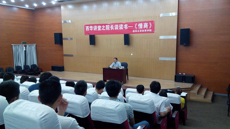 5月7日晚7:00,由体育学院承办的西华讲堂之院长谈读书活动在图书馆报告厅开展,体育学院院长胡志担任主讲人,学院团委书记孙颖老师主持活动,各年级专业同学代表参与。 开讲之前首先进行了赠书仪式,胡志院长对各年级优秀同学代表赠与丹尼尔·戈尔曼所著的《情商》。接着胡志院长由新东方创始人俞敏洪的事迹引出今天的主题“情商”,高情商人的特点有:能力较广泛、有雄心、有效率、热爱社交、乐观外向、乐于助人、善于奉献、有很强的责任感、亲和力强等。 胡志院长希望大家的观念从现在开始转变为从重“智商”到重“情商”。他阐述了推荐《情商》的10个理由,其中几个重要理由是:不懂情商的人是不健全的、情商高是一种最基本的生存能力、情商占取得事业成功中的大部分因素、情商能够教会大家如何培养人际关系,自我调节能力等。最后,胡志院长总结了情商的概念,就是管理情绪的能力。 听了胡志院长的讲座后,同学们表示更加透彻的理解到了“情商”的概念,明白了“情商”的重要性,并都希望能做一个“高情商”的人。