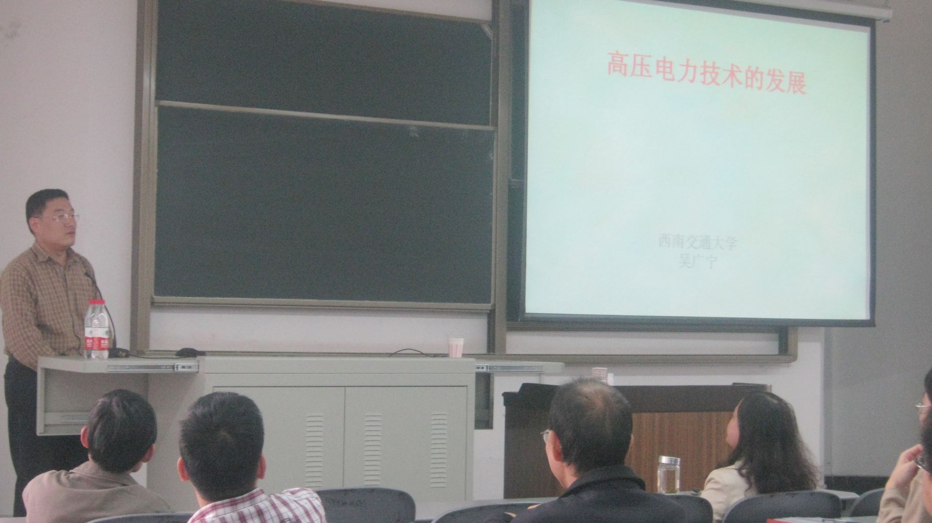 10月21日下午4点,西南交通大学电气工程学院博士生导师吴广宁教授应邀来我校作了题为“高压电力技术的发展”的学术报告。报告会在6B-303教室举行,电气信息学院院长王军、副院长魏金成及部分师生聆听了本次学术报告。 吴广宁教授在报告中详细介绍了电网和电力设备的发展。结合大量数据和图片,吴教授回顾了中国电网装机容量的发展历程,阐述了目前电网出现的主要问题,展望了未来电网的发展以及需要研究的问题。接着,吴教授向师生阐述了电力设备的发展历程,介绍了SF 气体、金属氧化物避雷器、硅橡胶等的发现及它们在电力设备中的应用等情况。 最后,吴广宁教授列举了高压电力技术未来的发展方向,诸如光电互感器、智能断路器等,引起了在场师生的强烈兴趣,为今后的研究提供了新思路。 会后,吴广宁教授就科研、实验室建设等方面问题与在场师生进行了深入的交流。