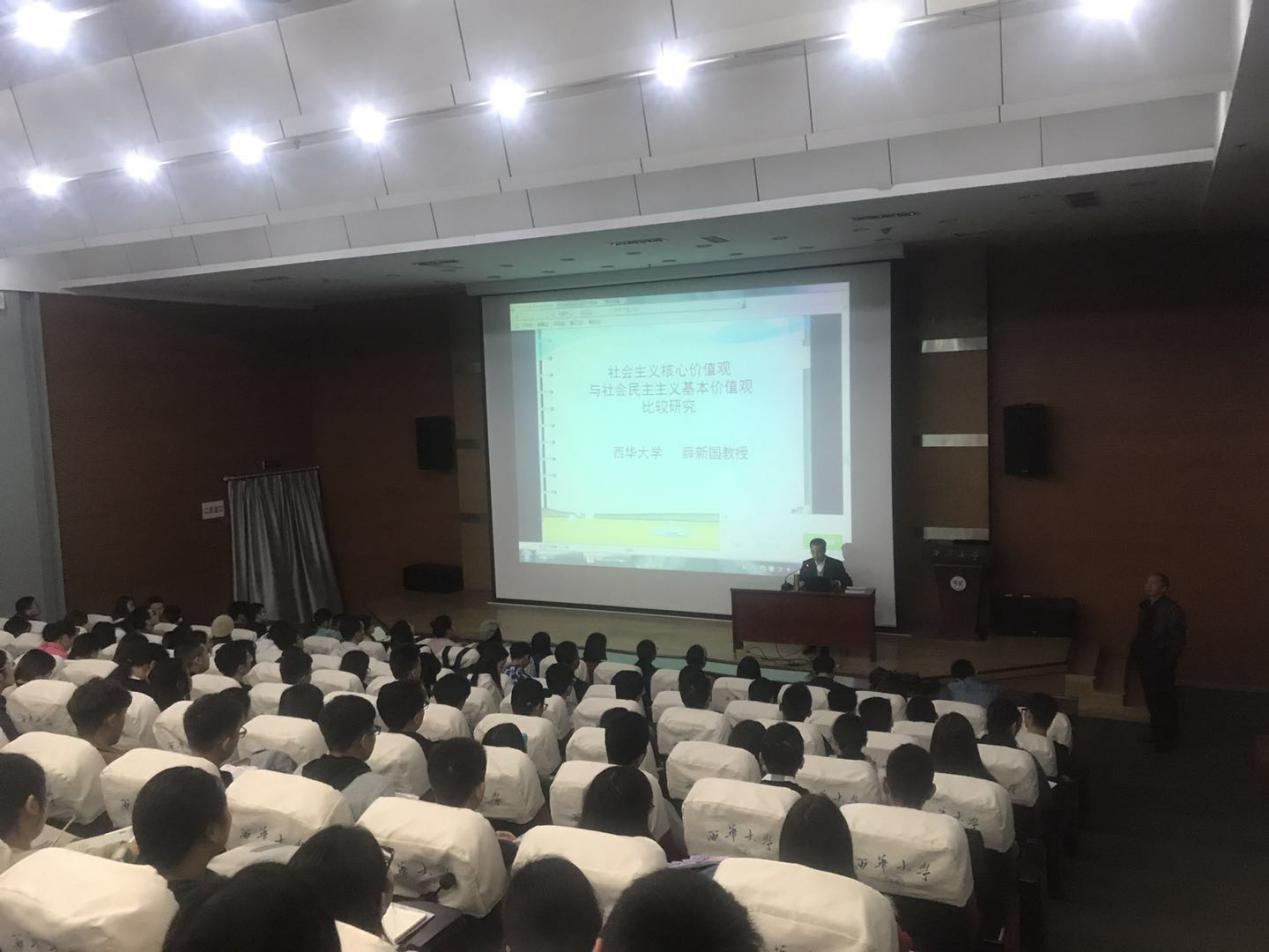 薛新国的讲座,视野开阔、内容丰富,针对性强,理论联系实际,有助于学生坚定马克思主义理想信念、坚定中国特色社会主义道路自信、理论自信、制度自信和文化自信,在广大师生中引起强烈反响,获得好评。