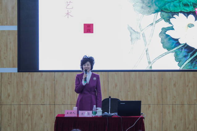 接下来,她从三个问题出发,具体讲解了朗诵的要点:第一,什么是朗诵;第二,朗诵应该具备什么样的表达技巧;第三,如何呈现声音魅力。在讲解过程中,寒露老师十分注重师生互动,多次邀请老师和同学们上台朗诵,并分别作出点评,以身为例,循循善诱。其中,特别值得一提的是,为了让每位同学都能感受到朗诵的魅力,寒露老师让全体同学一起朗诵《千字文》选段,整个四教报告厅顿时响起同学们如雷贯耳的声音。讲座现场气氛非常活跃,在座观众无不被她展现的艺术魅力深深吸引,不时发出阵阵掌声。