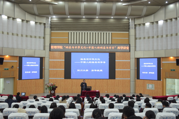 近日,管理学院在四教报告厅举办了以“姓名与中华文化——中国人的姓名与字号”为主题的西华讲堂。本次讲堂邀请到了四川大学彭华教授主讲。管理学院各班级代表,团委学生会各部门代表共260余参加此次讲堂。