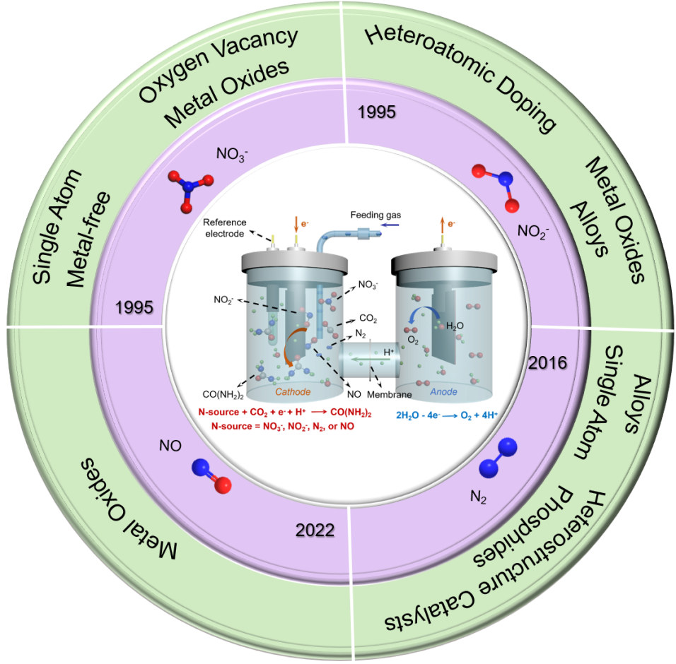 图2. 电催化合成尿素发展历程以及现已开放催化剂的分类图