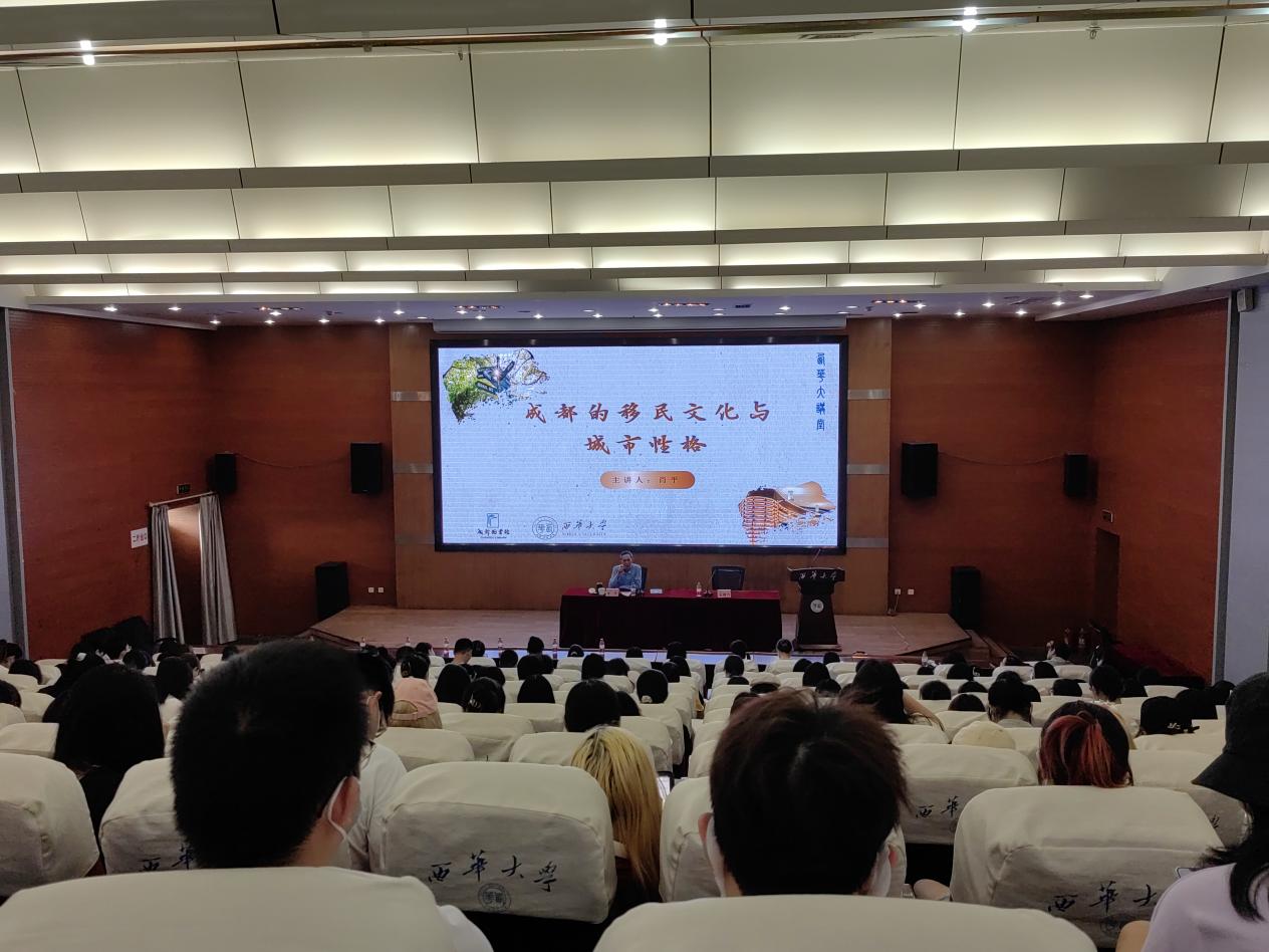 最后,肖平提出“移民文化全方位塑造了城市精神”这一观点,并以历史事实、社会现状为例,阐述了移民文化对创新创造、优雅时尚、乐观包容、友善公益的成都城市精神形成的影响,并借此表达了对成都城市发展的美好祝愿,鼓励同学们砥砺奋进,为成都城市发展做出贡献。无论是“老成都”,还是蓉漂新移民,能够与成都这座城市携手共进,在新时代奋进中国特色社会主义现代化建设的新征程中,共同谱写治蜀兴川新篇章。