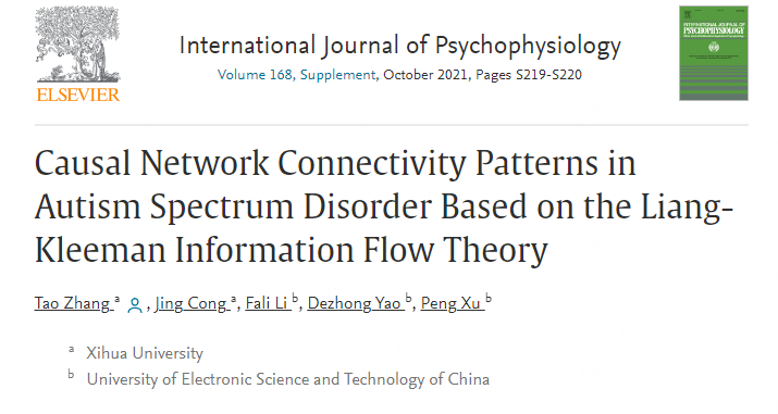 该论文通过Liang-Kleeman信息流方法构建了ASD脑因果网络,比较了ASD与正常被试的脑因果连接差异。该论文被SCI收录,《International Journal of Psychophysiology》(中科院大类3区,IF = 3)。