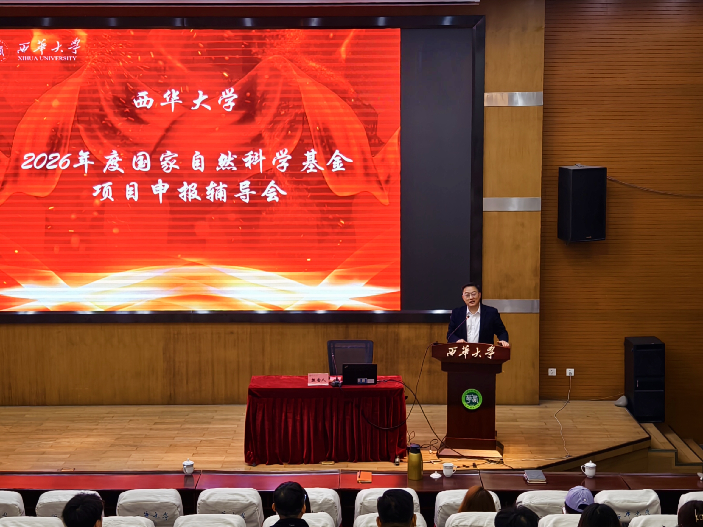 2025年10月28日,西华大学2026年度国家自然科学基金项目申报辅导会在图书馆报告二厅举行。武汉大学/华中科技大学郑俊杰教授作申报辅导报告,郎方年副校长出席会议并讲话,科技处处长唐洁主持会议。各学院科研骨干、2026年度拟申报人、科技处相关人员参加会议。